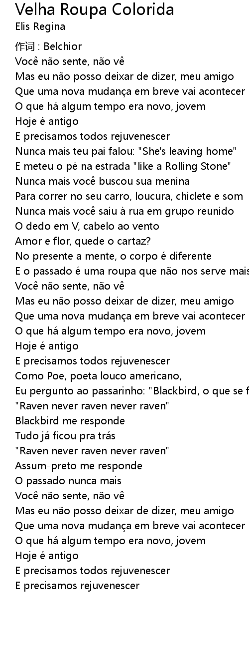 | Eu pergunto ao passarinho: "Blackbird, o que se faz?" | |