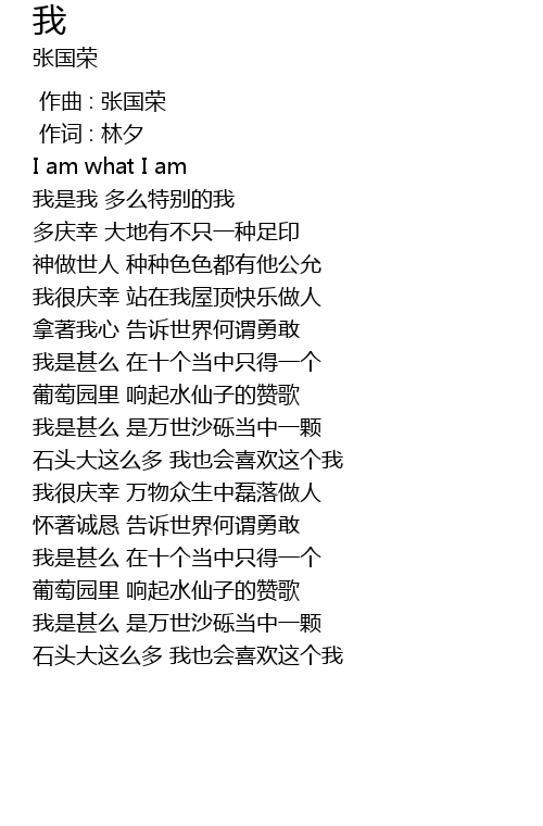 | [00:04.750] | I am what I am |