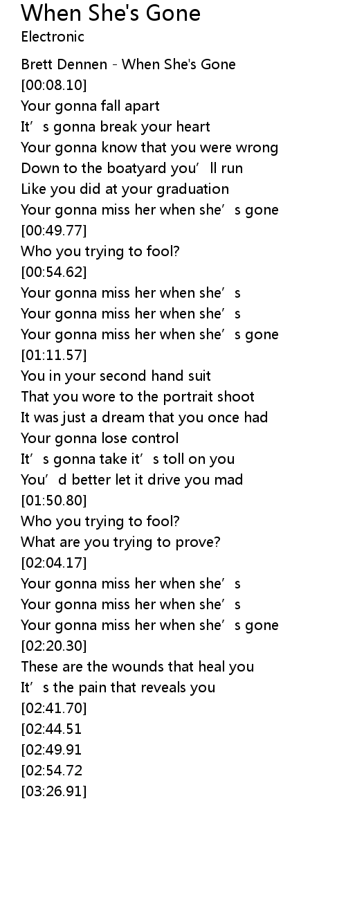 | [00:41.35] | Your gonna miss her when she’s gone |