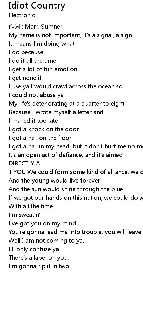 | 歌曲 | Idiot Country |