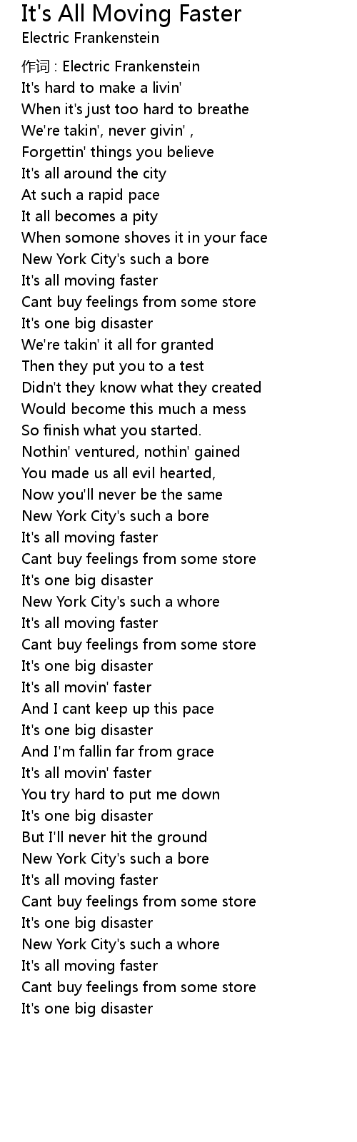 | 歌曲 | It's All Moving Faster |