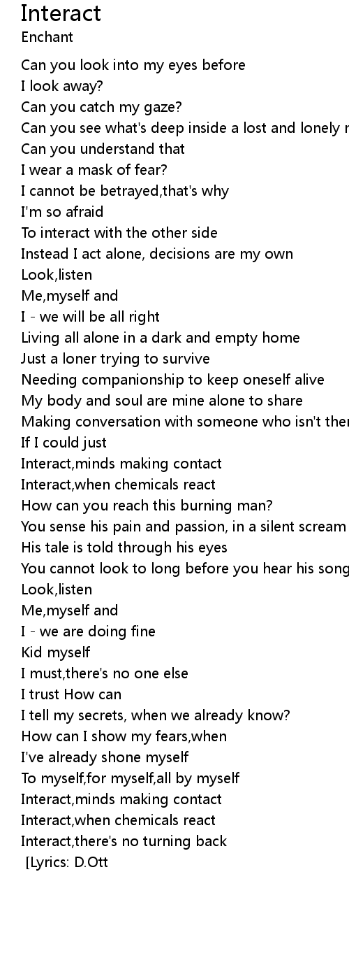 | If I could just interact [Music: D.Ott,P.Craddick,M.Geimer] [Lyrics: D.Ott] |