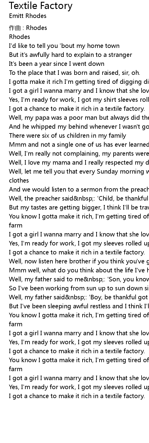 | You know I gotta make it rich, I'm getting tired of digging ditches back on the farm | |