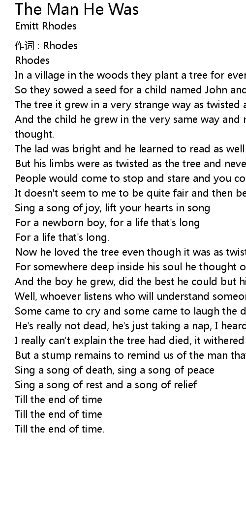 | And the boy he grew, did the best he could but his limbs remained the same | |
