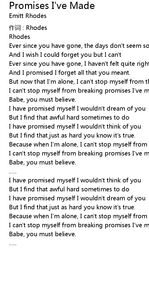 | 歌曲 | Promises I've Made |