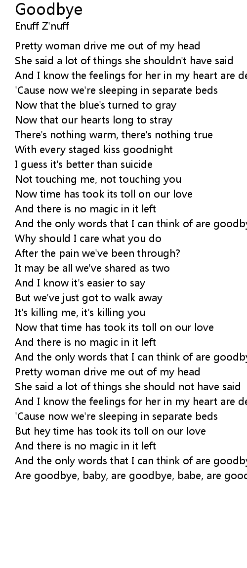 Are goodbye, baby, are goodbye, babe, are goodbye, baby