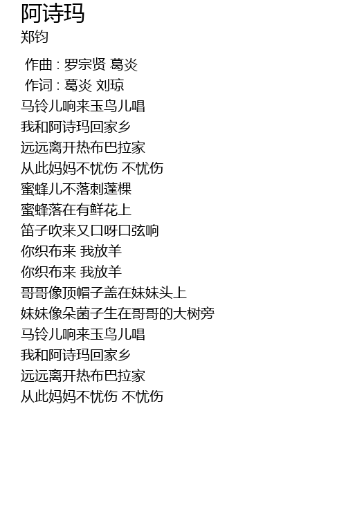 | [00:53.000] | 我和阿诗玛回家乡 |