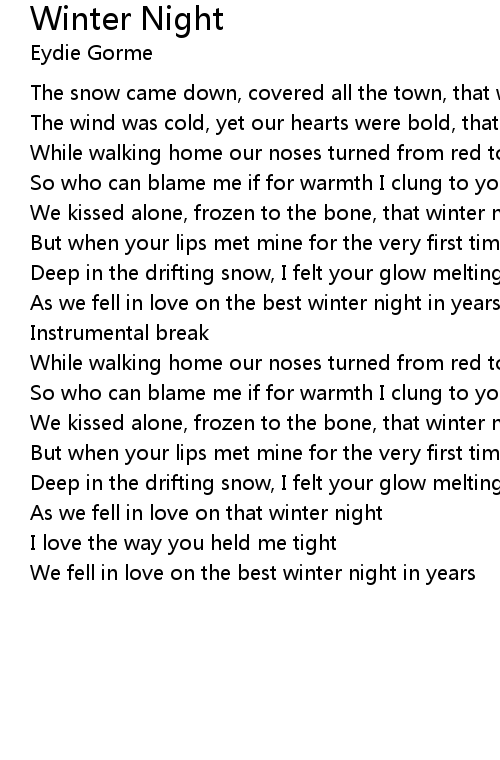 Deep in the drifting snow, I felt your glow melting all my lonely fears |