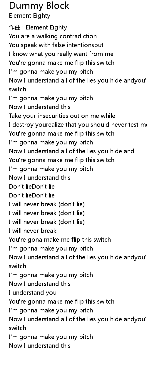 | Now I understand all of the lies you hide andyou' re gonna make me flip this switch | |