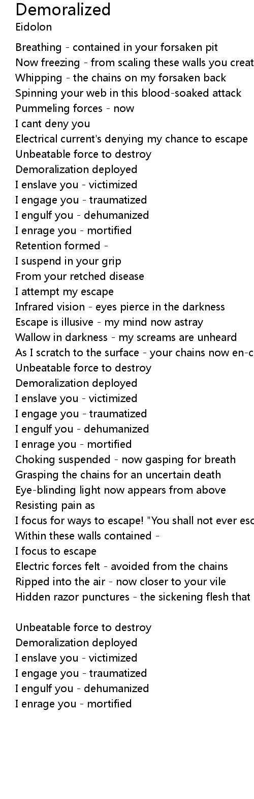 Hidden razor punctures - the sickening flesh that holds my last escape! [Solo - Glen] |