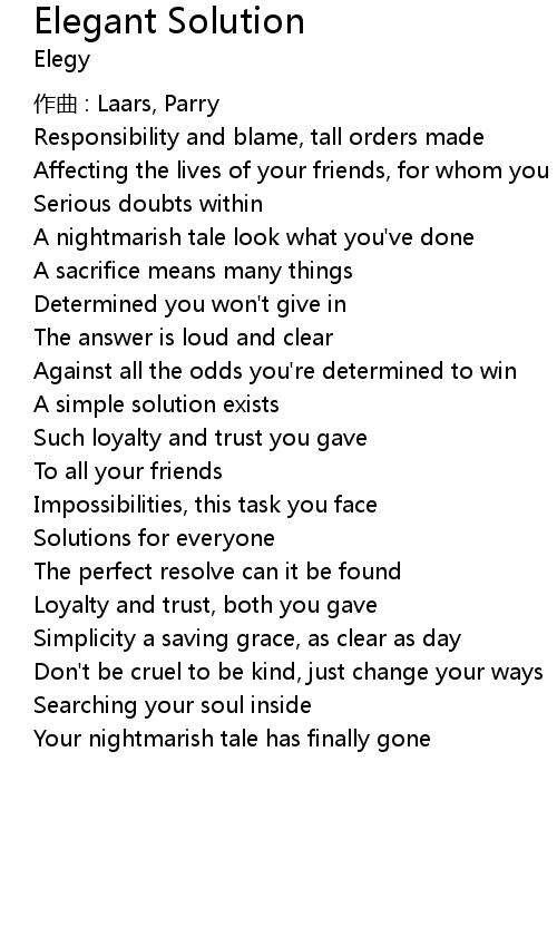 | 歌曲 | Elegant Solution |