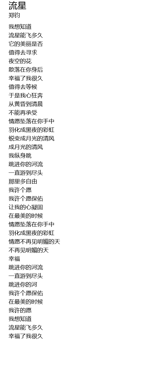 | [00:37.390] | 流星能飞多久 |