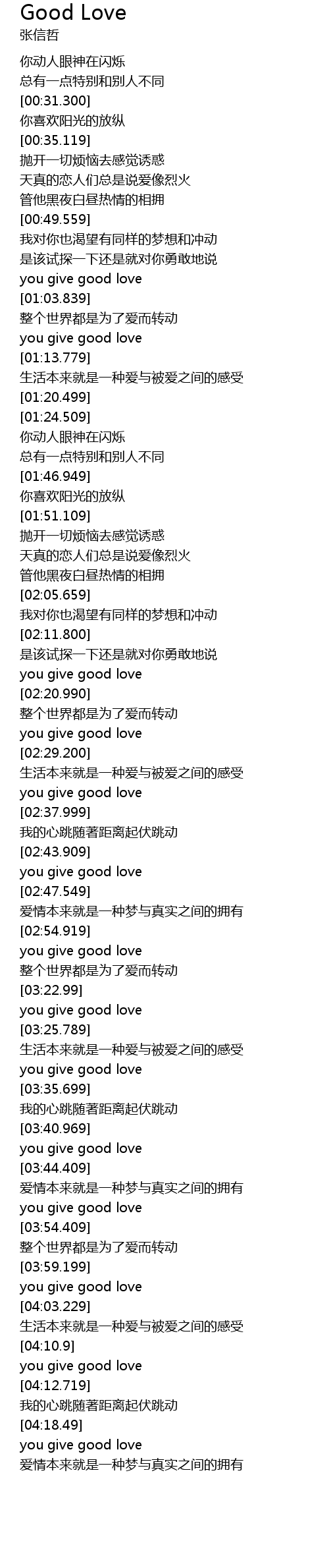 | [03:23.609] | you give good love |
