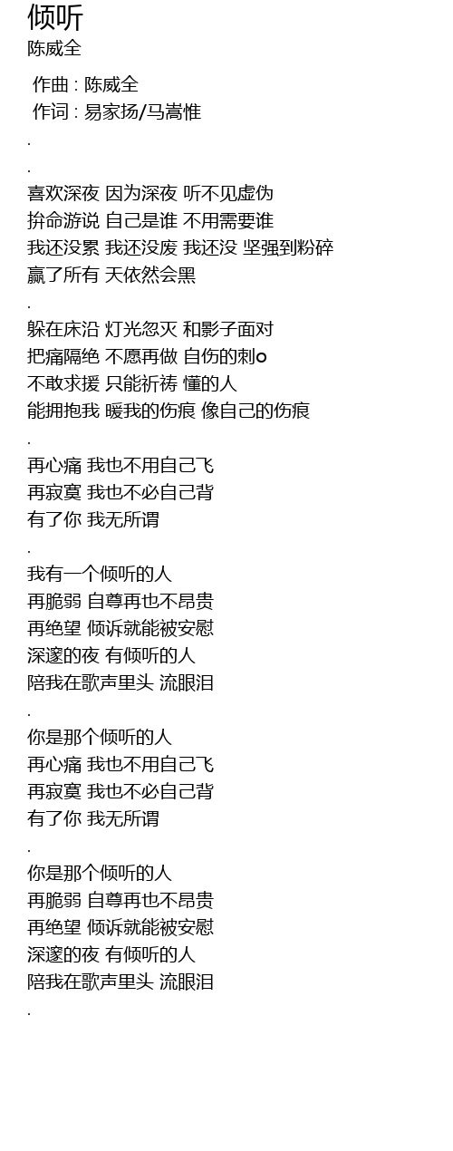 | [04:01.31] | 深邃的夜 有倾听的人 |