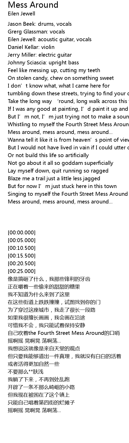 | [03:26.000] | Mess around, mess around, mess around... |