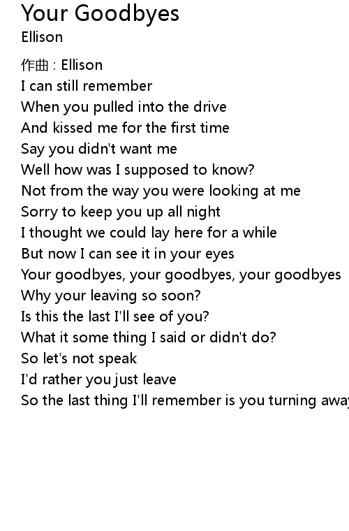 | 歌曲 | Your Goodbyes |