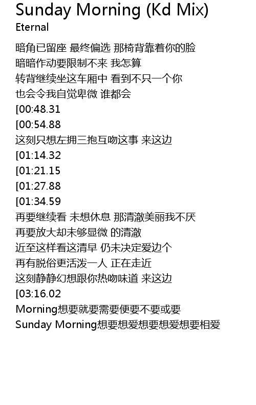 | [03:29.53] | Sunday Morning想要想爱想要想爱想要相爱 |