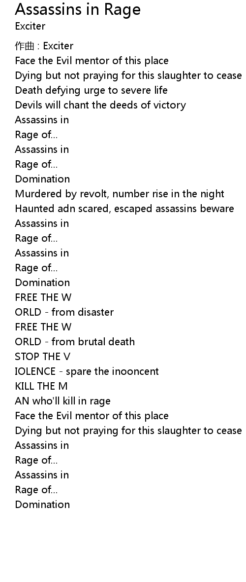 | 歌曲 | Assassins in Rage |