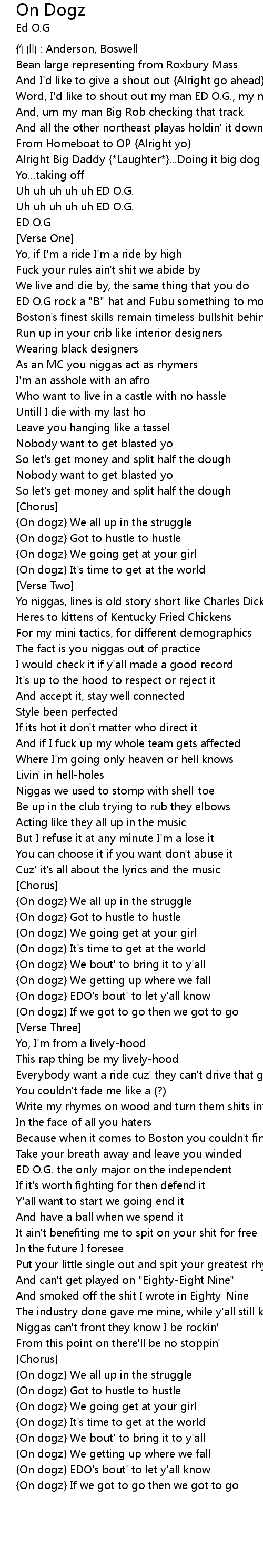 | Word, I' d like to shout out my man ED O. G., my man Big Shug Ok | |