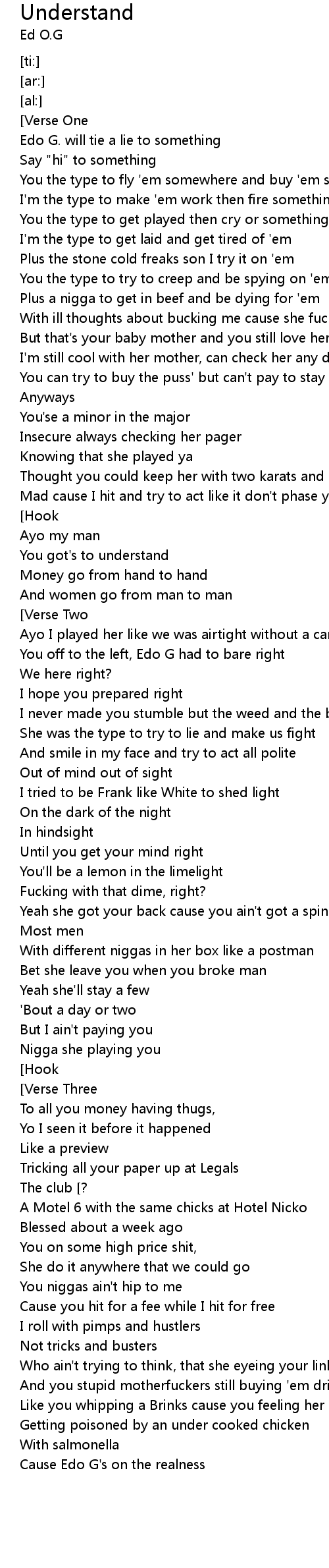 Cause Edo G's on the realness |
