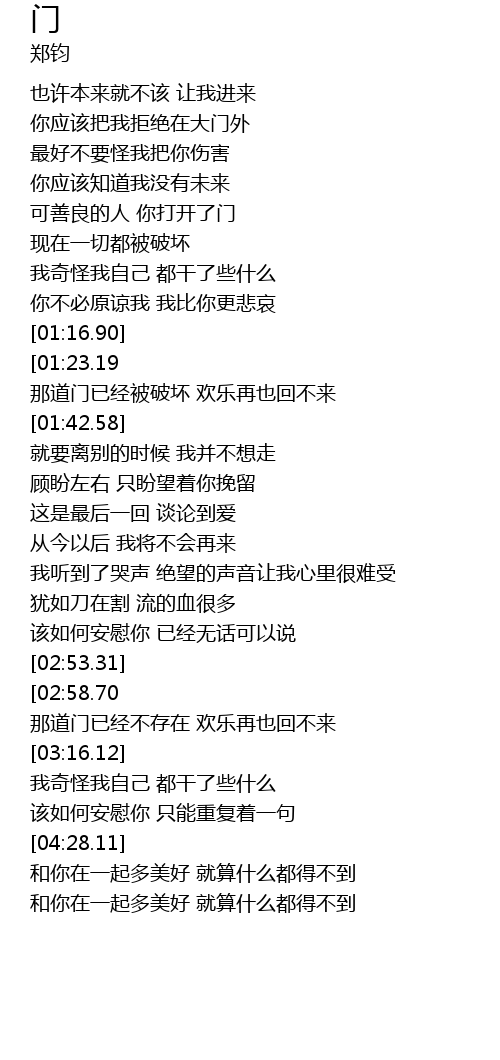 | [01:30.89] | 那道门已经被破坏 欢乐再也回不来 |