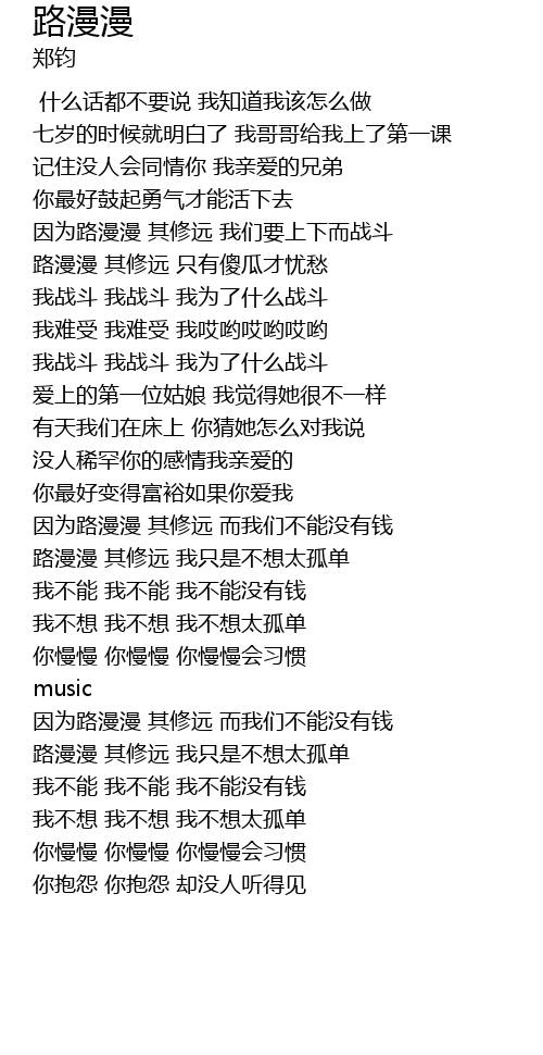 | [01:42.570] | 路漫漫 其修远 我只是不想太孤单 |