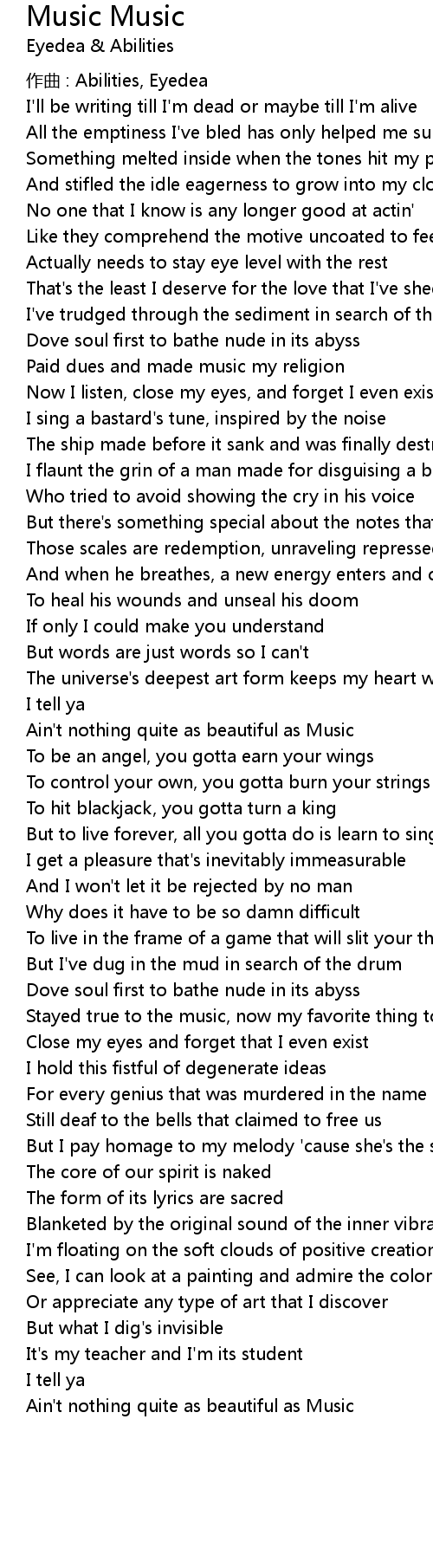 | Ain' t nothing quite as beautiful as Music |