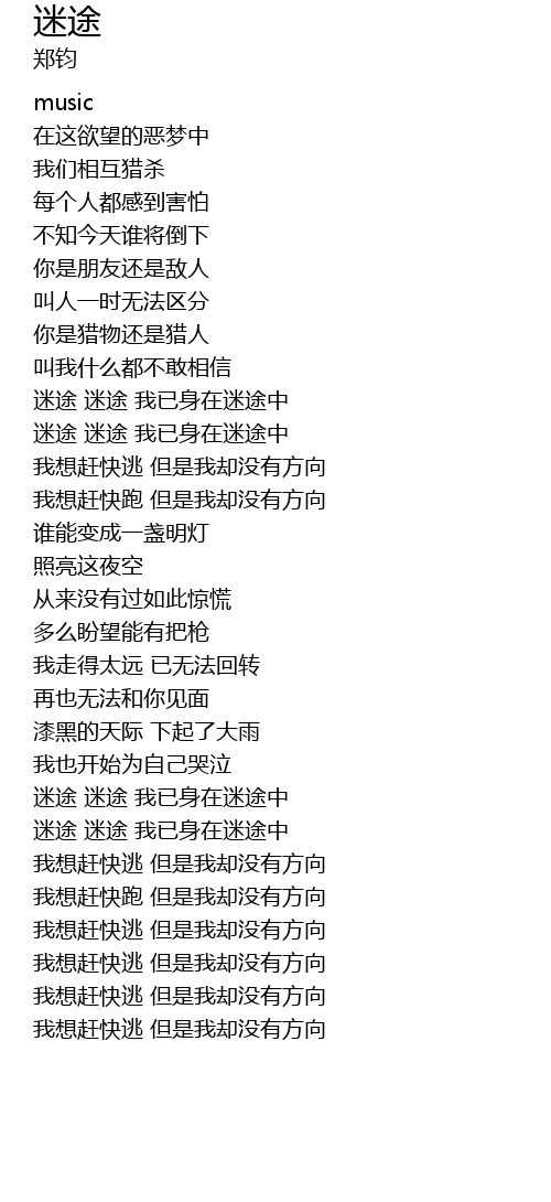 | [01:31.96] | 迷途 迷途 我已身在迷途中 |