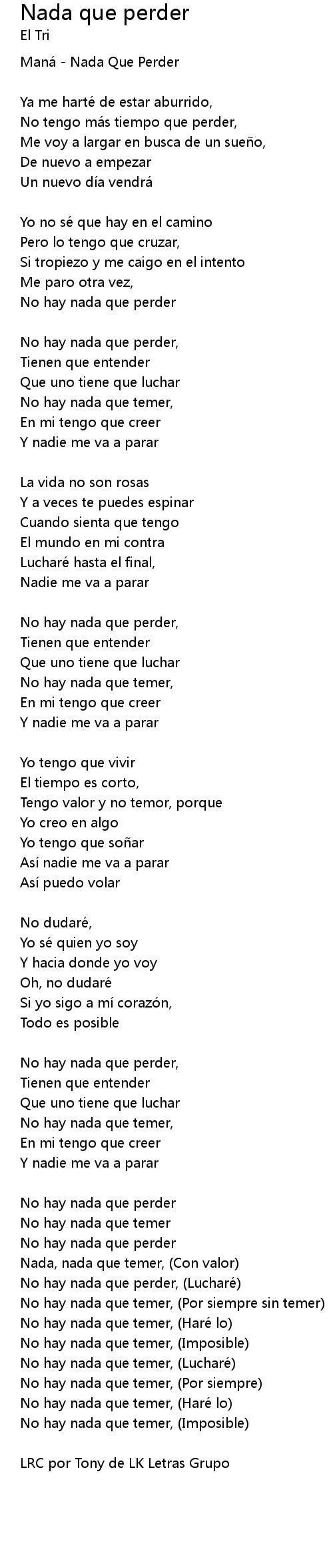 | 歌曲 | Nada que perder |
