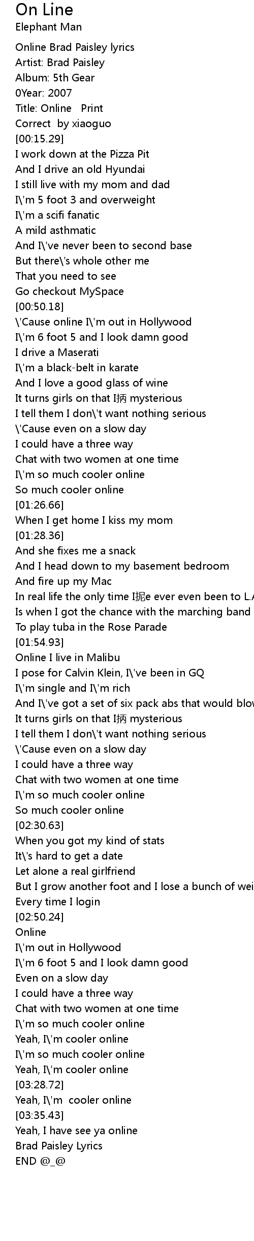| [00:50.74] | ' Cause online I' m out in Hollywood |