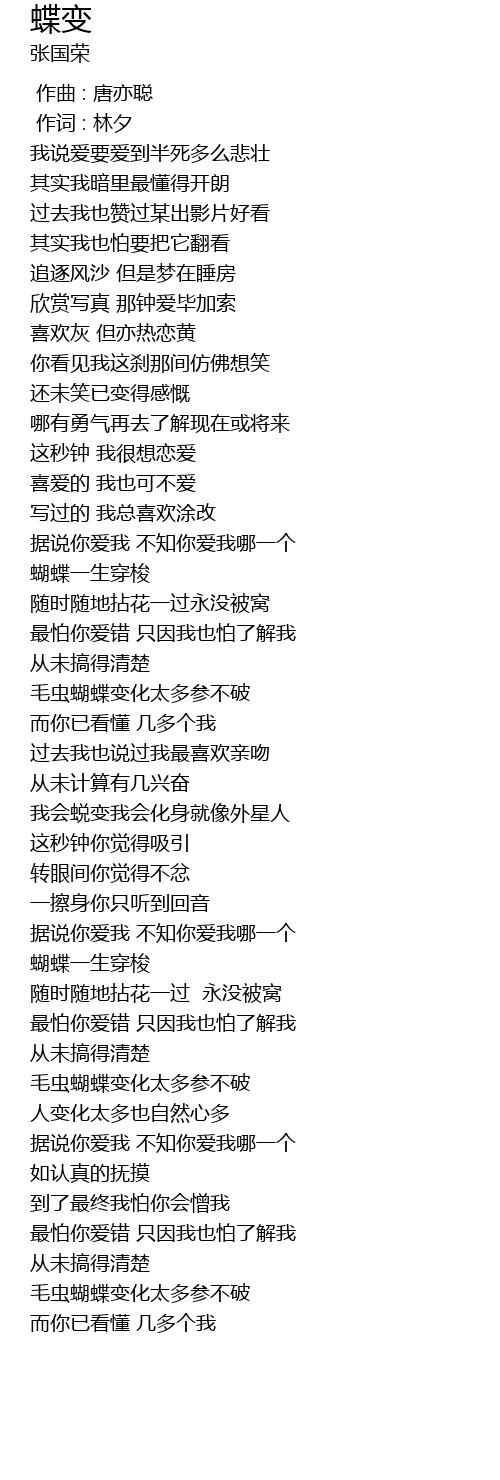 | [01:23.83] | 毛虫蝴蝶变化太多参不破 |