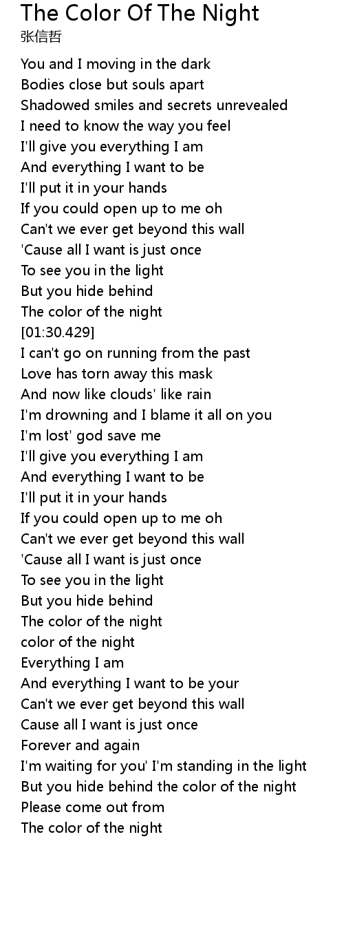 | [03:29.629] | I' m waiting for you' I' m standing in the light |