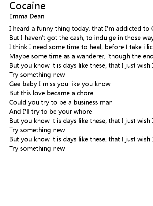 I heard a funny thing today, that I'm addicted to Cocaine |