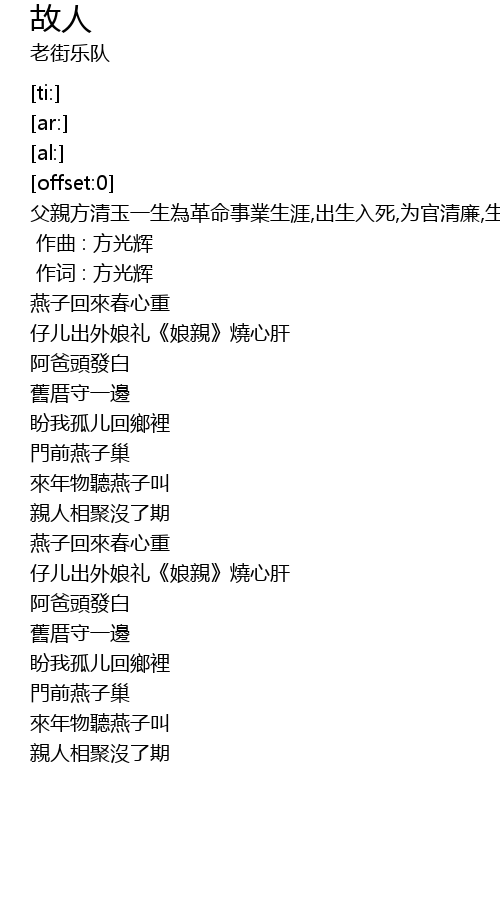 | [00:01.000] | 作词 : 方光辉 |
