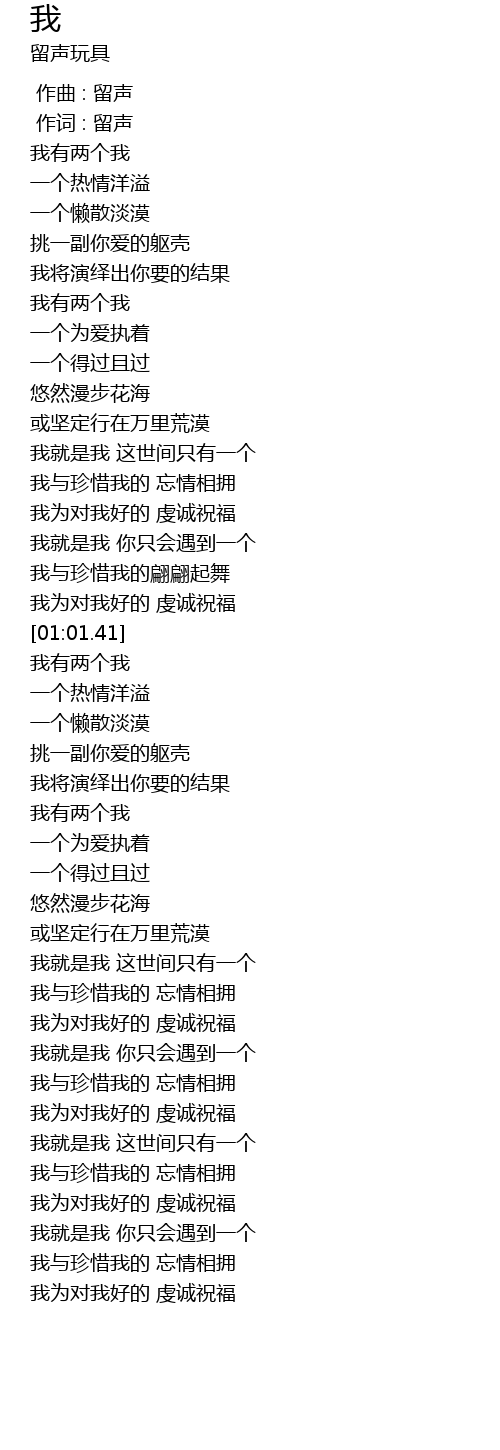 | [01:23.26] | wǒ yǒu liǎng gè wǒ |