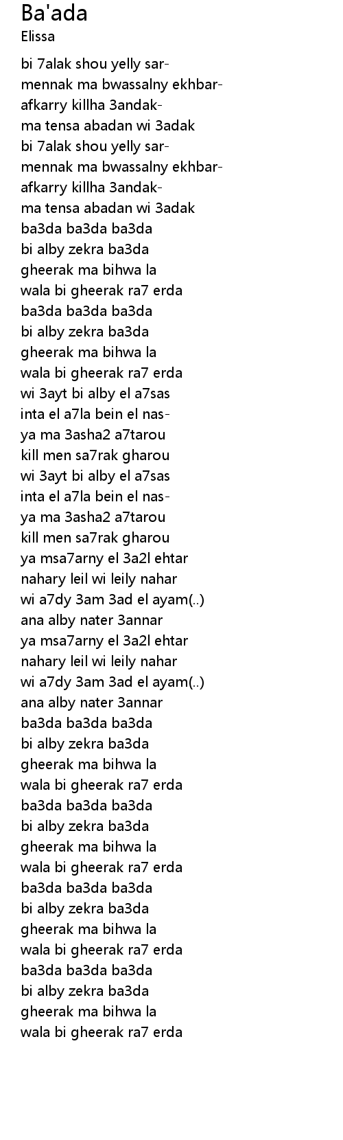 | [02:04.28] | wi 3ayt bi alby el a7sas |