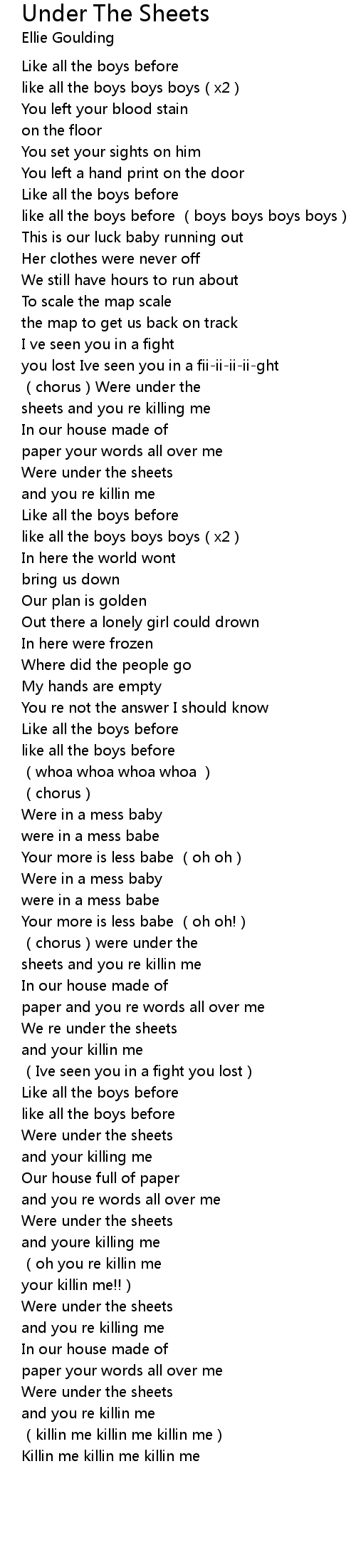 | 歌曲 | Under The Sheets |