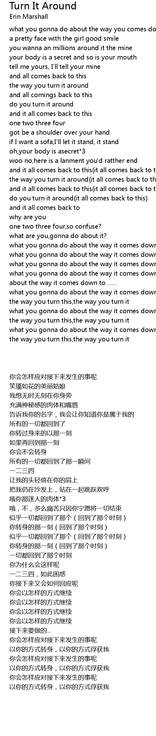 | [01:36.42] | the way you turn it around it all comes back to this |