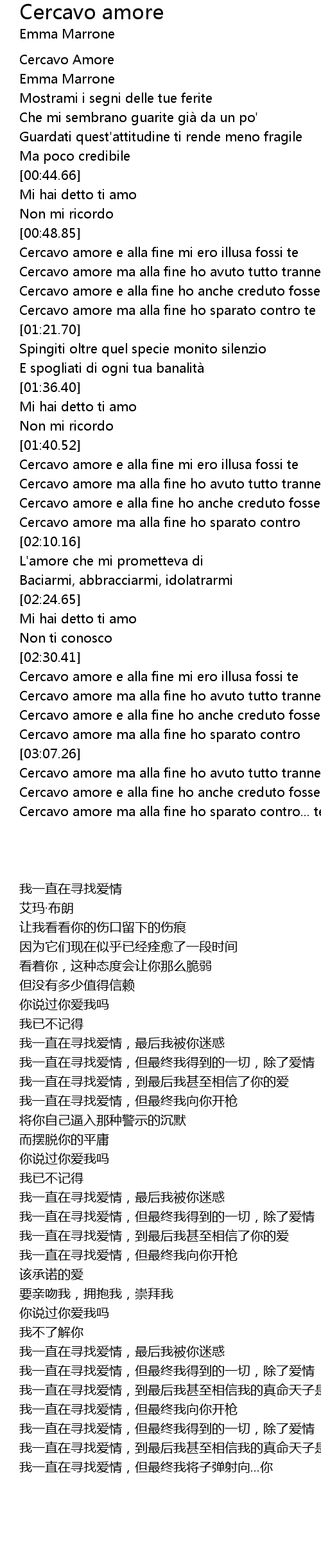 | [02:45.53] | Cercavo amore e alla fine ho anche creduto fosse in te |
