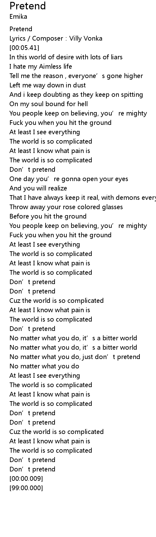| [03:21.43] | Don' t pretend |