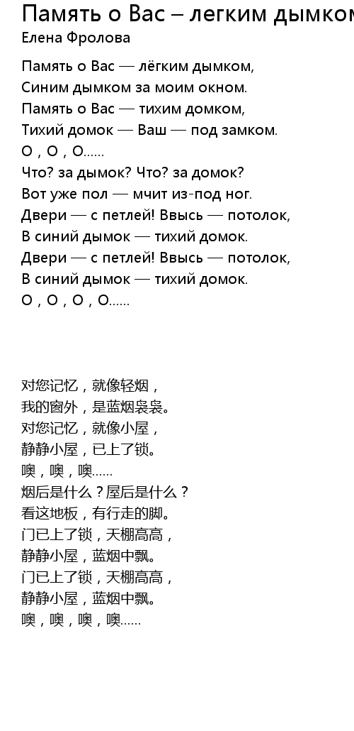 | 歌曲 | Память о Вас – легким дымком… |