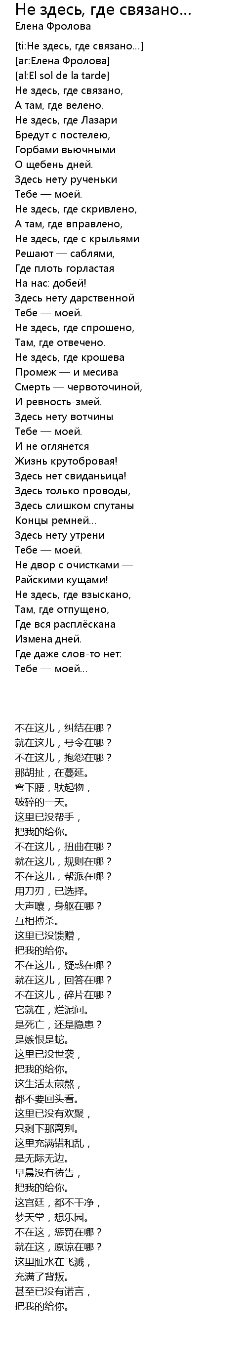 | 歌曲 | Не здесь, где связано… |
