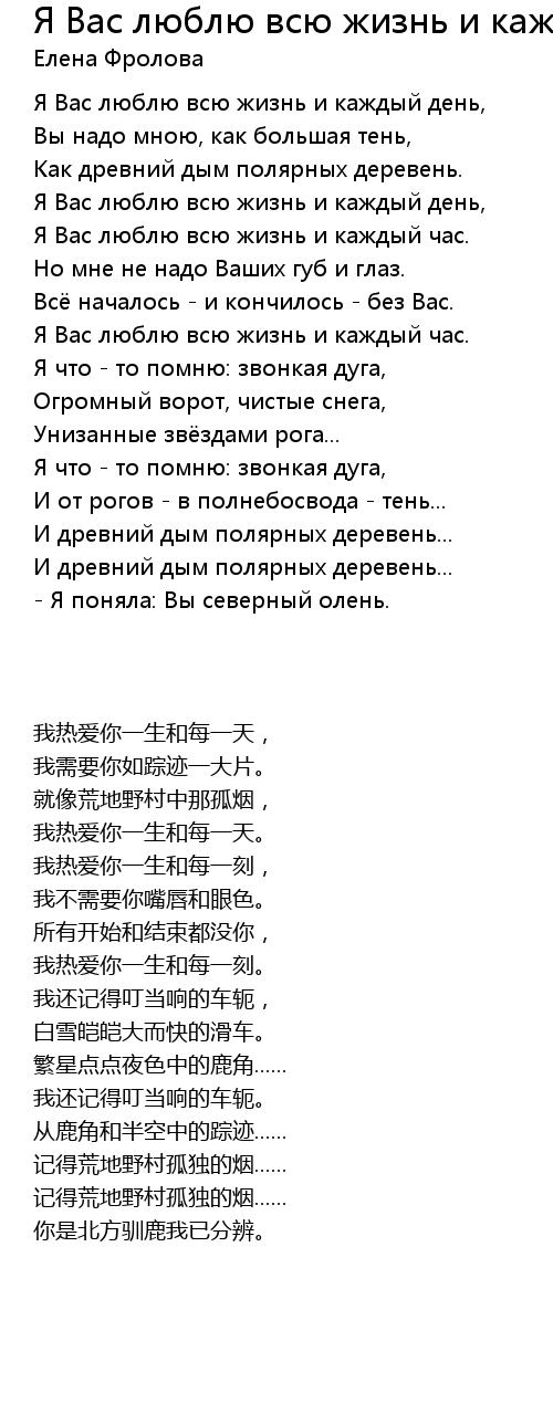 | 歌曲 | Я Вас люблю всю жизнь и каждый день… |