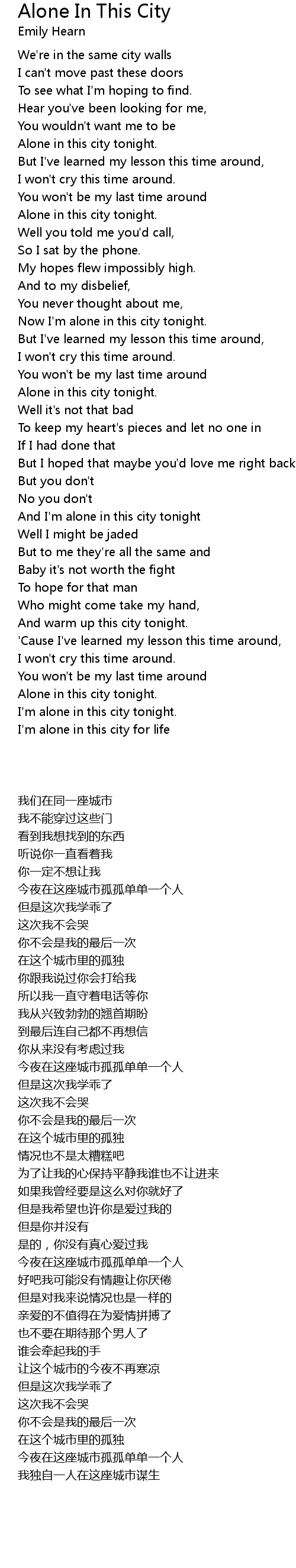 I'm alone in this city for life |