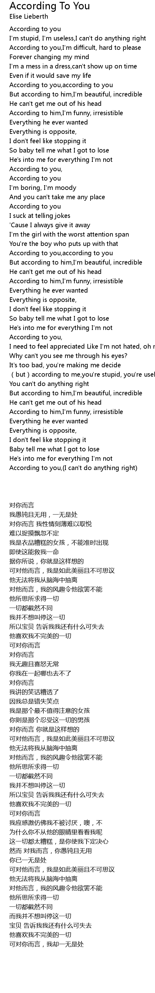 | [00:09.42] | According to you,I'm difficult, hard to please |