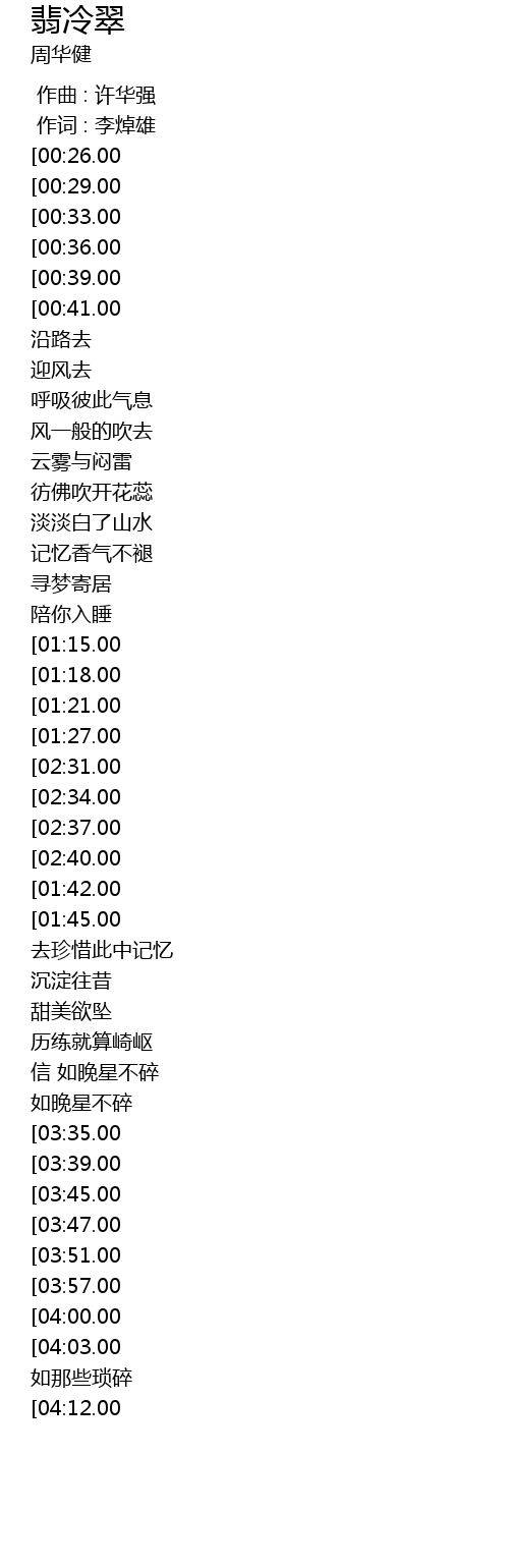 | [04:33.00][03:57.00] | 如冷的翡翠 |