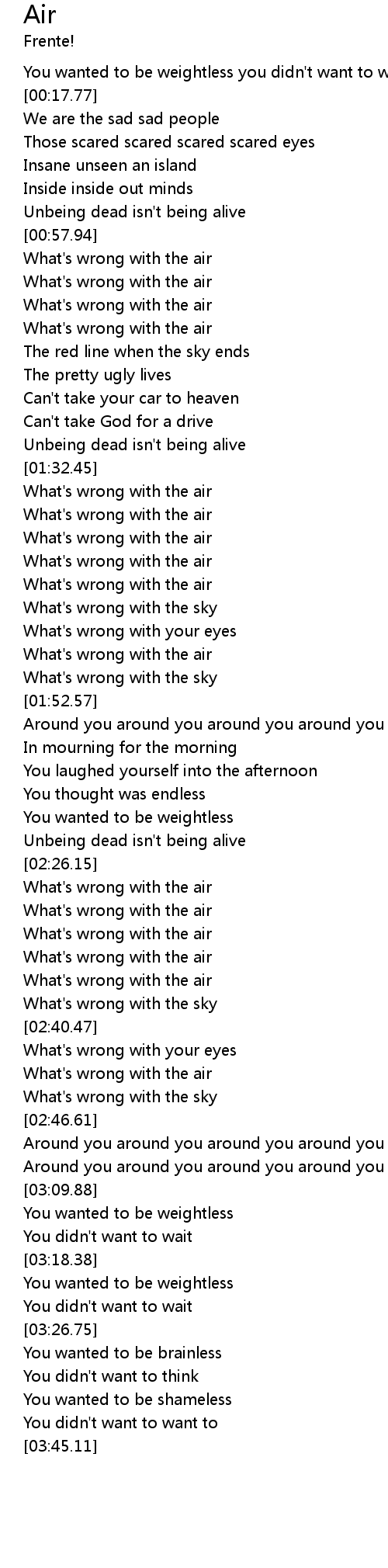 | [01:44.50] | What's wrong with the air |