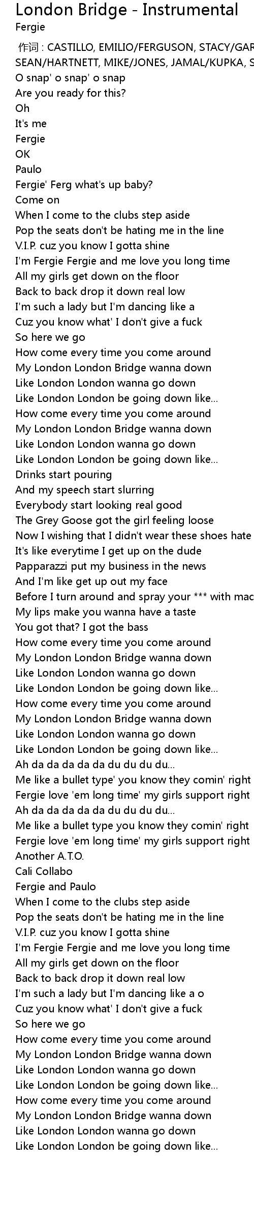| [00:17.92] | Fergie' Ferg what' s up baby? |
