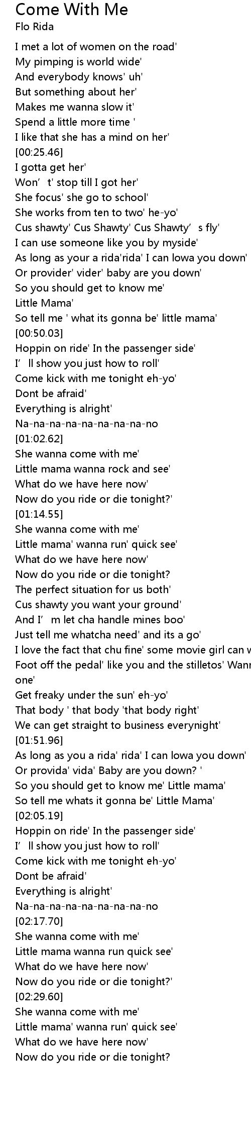 | [01:02.81] | She wanna come with me' |