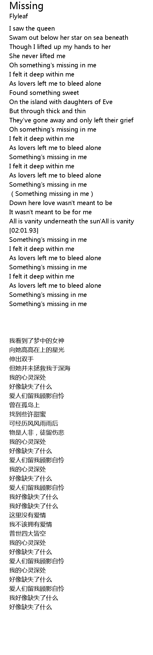 | [02:32.62] | Something's missing in me |